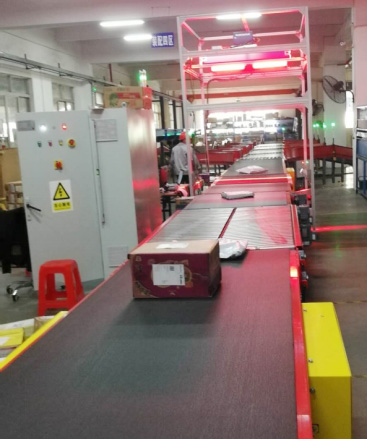 自動收寄線:用于每條分揀輸送帶的入庫端、出貨端,自帶攝像頭辨別數據功能,可自動讀條碼、稱重、測量體積場合,通過與客戶系統接口的交互獲取包裹收寄狀態(正常寄件或異常件),如果是正常收寄件則直接通過自動收寄件,如果是異常件就會被隔離板分撥到另一邊,由分揀人員確認異常。自動收寄線大大地減少了人工確認工作量,提高了分揀的工作效率,降低了時間和勞動成本,在快遞分揀中有著重要的作用和意義。